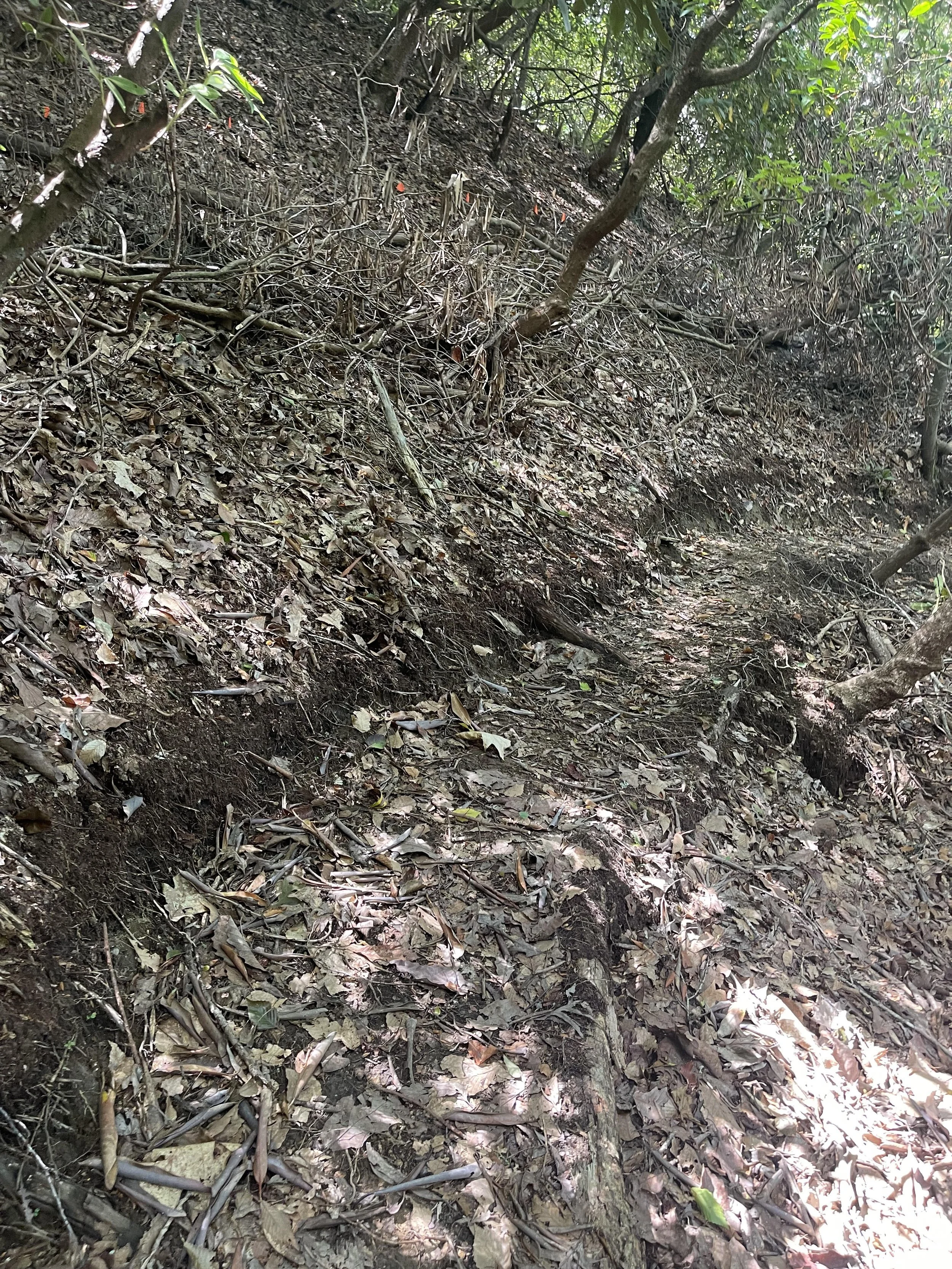 Initially we place flags to mark the proposed route. These flags will be edited several times, allowing us to determine the optimum flow before disturbing any vegetation.